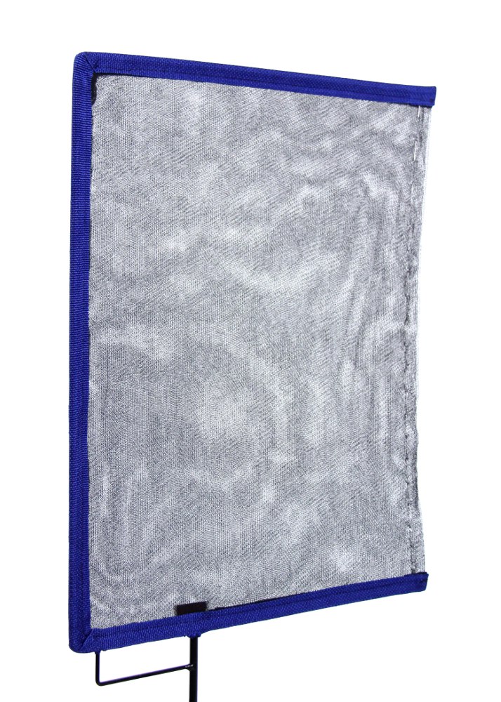 Open End Frames are made of spring steel with a 3/8" pin and support which can be used to hang the Scrim from the C Stand handle when not in use. The two upright arms of the frame are slotted at the two open ends to retain the piano wire woven through the fabric to make up the fourth side of the frame without causing a shadow. Open Ends are used to control or manipulate light falling on certain areas of the set or subject. They can be used to soften or reduce light without a noticeable edge. A color coded binding is used around the frame to identify the fabric. Matthews Open End frames are black powder coated to minimize unwanted reflections.