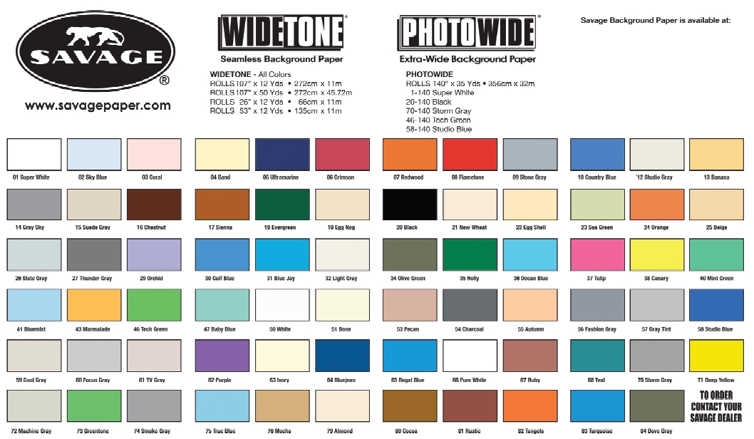Savage Widetone® Seamless Background Paper has been the Professional Photographers choice for over fifty-five years. Widetone is a high quality, fine tooth non-reflecting surface seamless paper. Compatible with a variety of mediums, Widetone is ideal for photo background, display banners, drafting and decorations.