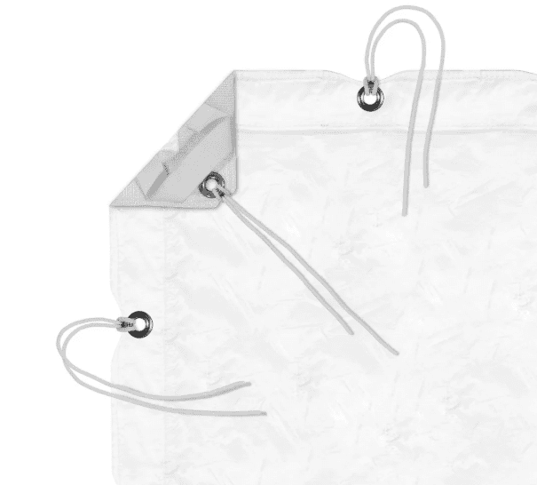 Comes with grommets and ties.