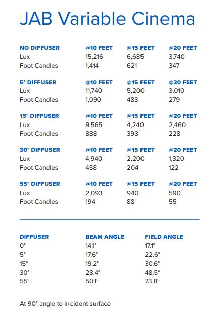 Optical efficiency provides a single light source eliminating multiple shadows. The Variable comes equipped with four quick change lenses to vary the beam angle for spot, medium or flood while maintaining a flat, even field of light. There are several control possibilities with the Variable; built in User Interface Module (UIM) with Kelvin temperature display, DMX with DMX loop-thru, or via the optional corded UIM Controller with Kelvin temperature display. A heavy-duty yoke is provided and a full set of accessory options are available; barn doors, ATA Mil-spec road cases, speed rings, light banks, filters and more. Several Kit versions coupled with various accessories and housed in a rugged Mil-Spec waterproof molded rolling case. When your production requires precise color temperature control and reliable even lighting; the JAB Variable Cinema by AAdynTech has no peer.