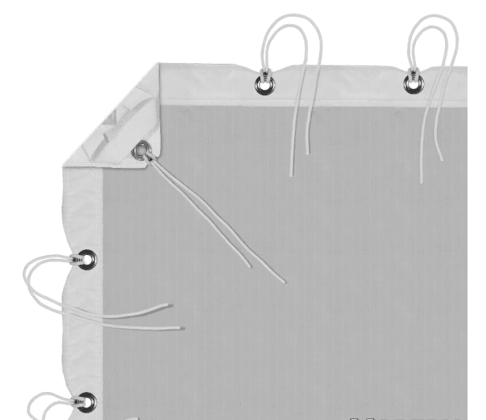 Light diffusion of direct light. Introduces a significant amount of ambient bounce. Fabric has elastics in corners and grommets along perimeter for attaching to frame with string ties.