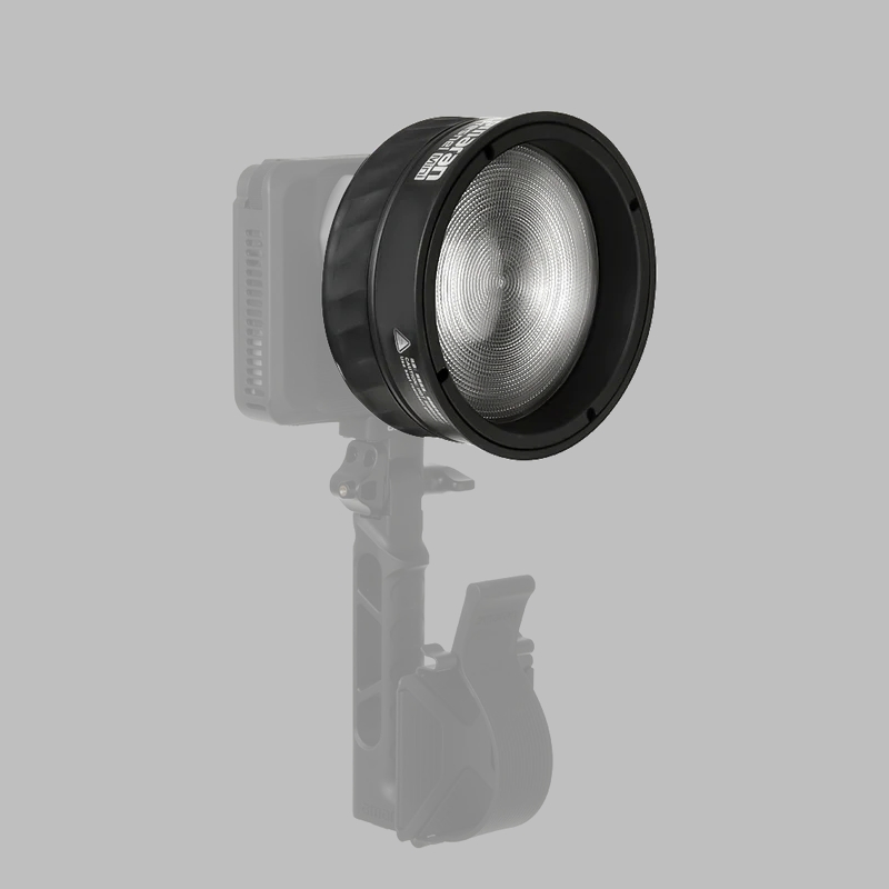 The 4.7" glass lens is designed for smooth, even falloff from the center to the edge of the beam, helping you avoid harsh edges and hot spots. This results in a more natural transition on faces, products, and backgrounds, making it easier to achieve cinematic-looking light with minimal diffusion.
