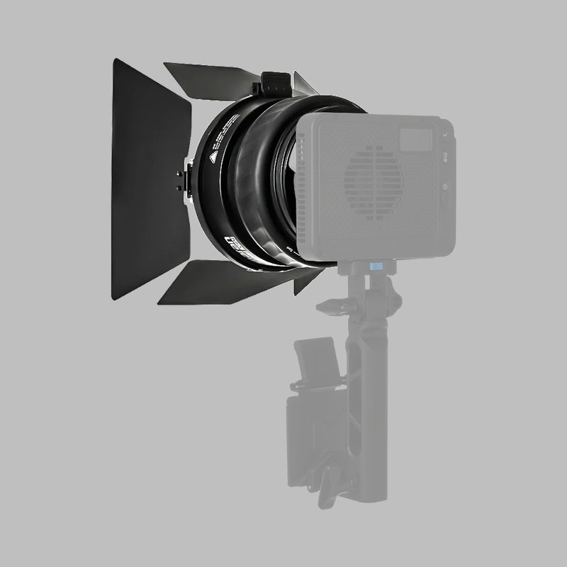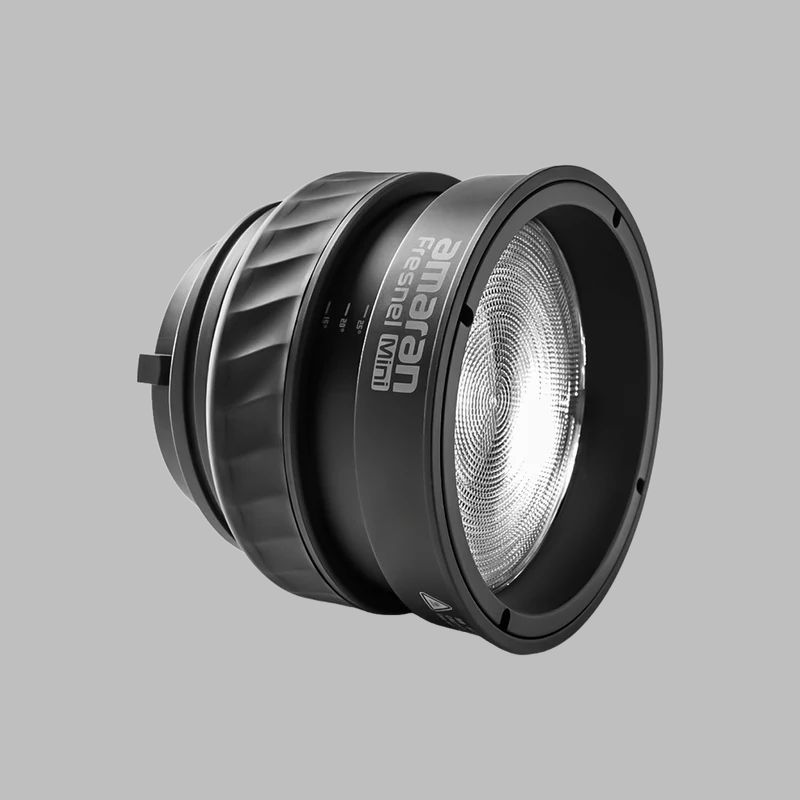 The amaran Mini Fresnel & 4-Leaf Barndoor is a compact Bowens-mount fresnel attachment designed to boost, shape, and control the output of the amaran Ray 60c and Ray 120c lights. It delivers a powerful, focusable beam with smooth falloff, making it ideal for creators who want more punch and precise light control from ultra-portable fixtures.