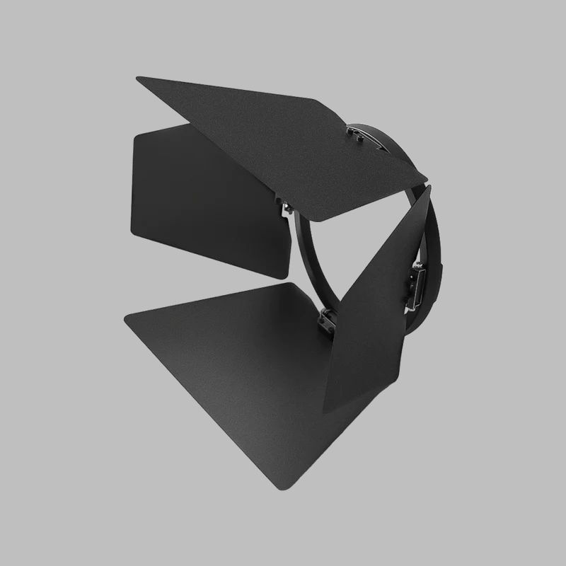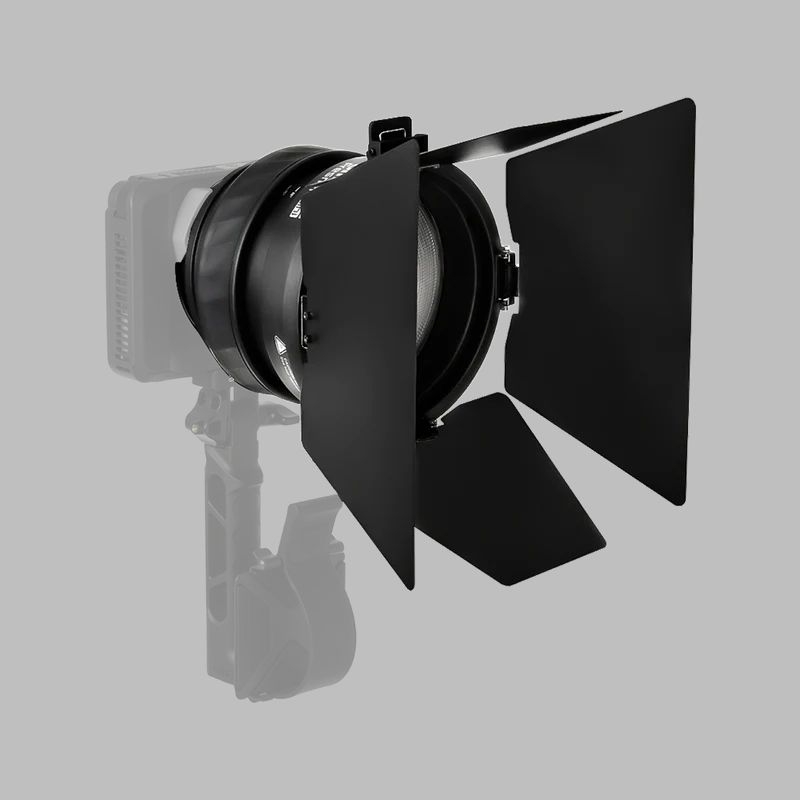 Included 4-leaf Mini Barndoors give you fine control over beam shape and spill, so you can keep light off walls, ceilings, lenses, and backgrounds. Each leaf adjusts independently, allowing you to flag one side, create slits of light, or subtly vignette the beam.