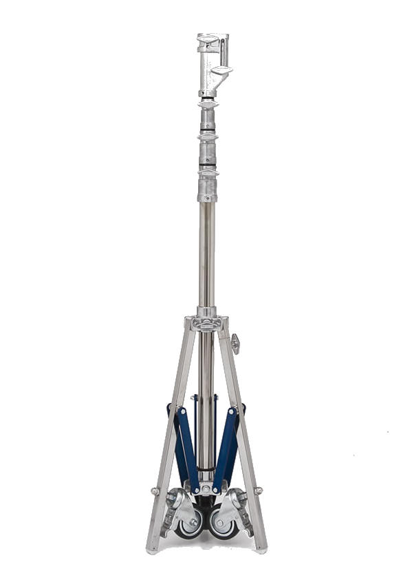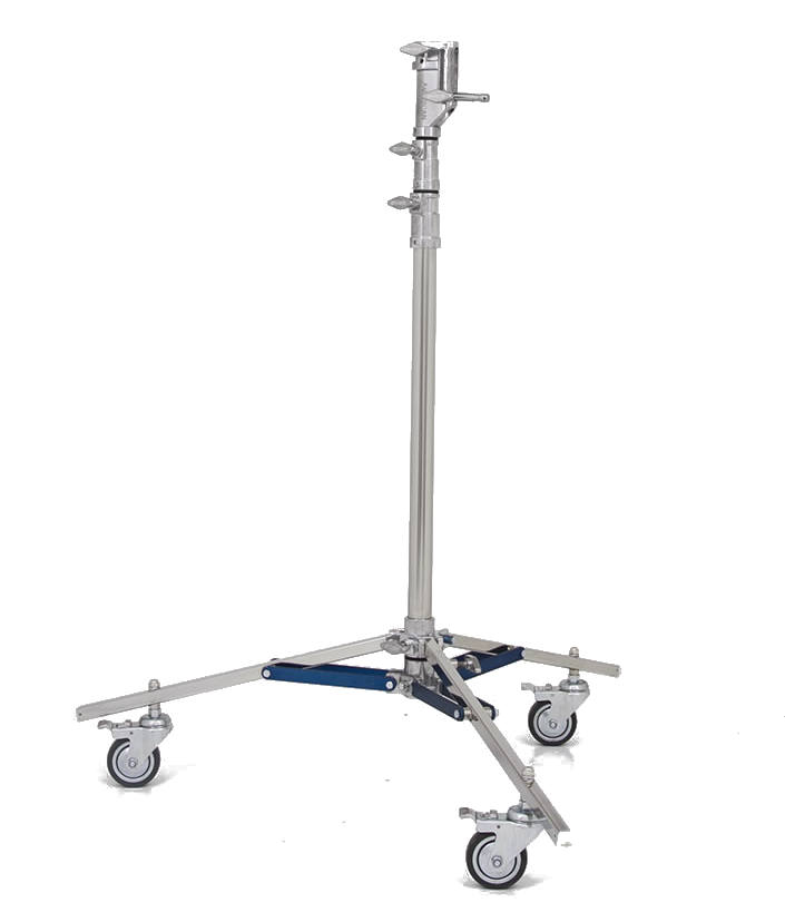 The American Grip Junior Roller 3 Rise Stand LS12 reaches a maximum height of 13'6" and features a Rocky Mountain Leg for working on un-even surfaces.