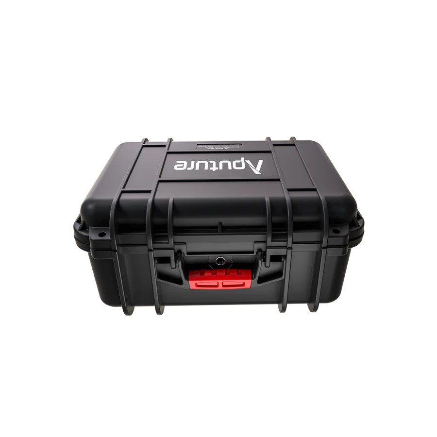 The kit includes a dustproof case with an integrated AC charger, flip-lock latches, and a pressure release valve. The case is padlock-compatible for security and has a molded handle for easy portability.