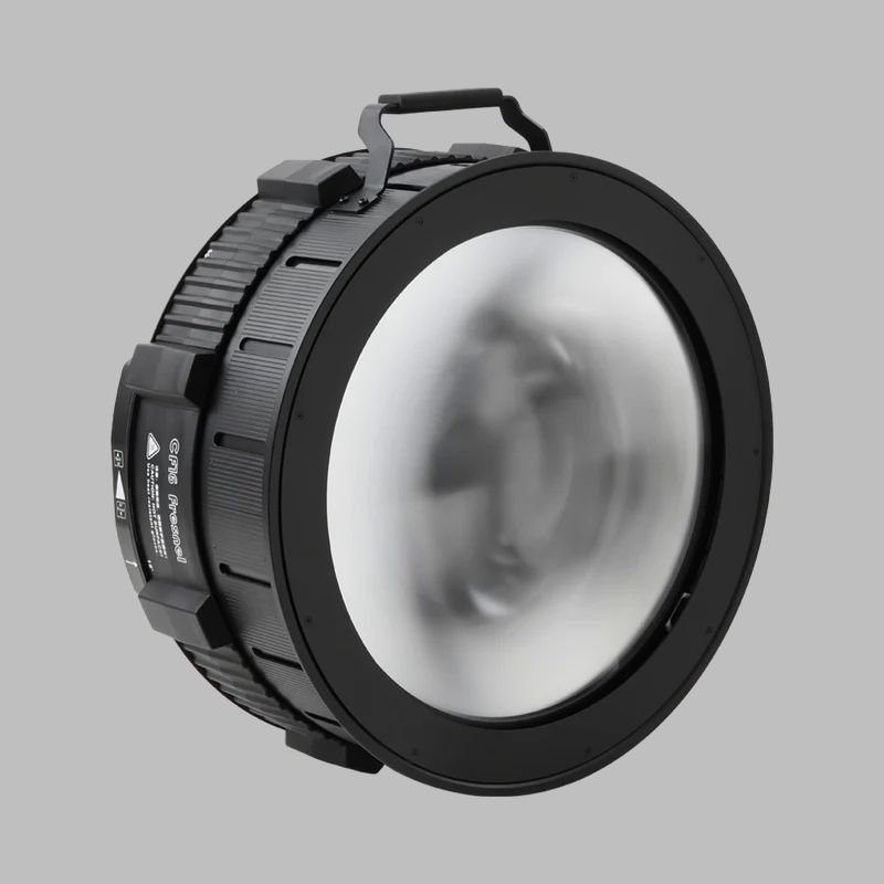 Featuring a 16-inch Fresnel lens and a motorized dual-expanding focusing system, the CF16 intensifies the XT52’s native output by up to 7x, producing up to 184,500 lux at 9.8 feet (18°, 4300K). The adjustable 18° spot to 50° flood beam angle provides smooth, cinematic falloff from center to edge, allowing precise shaping for any lighting scenario.