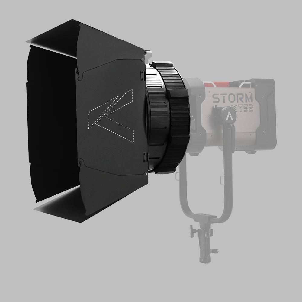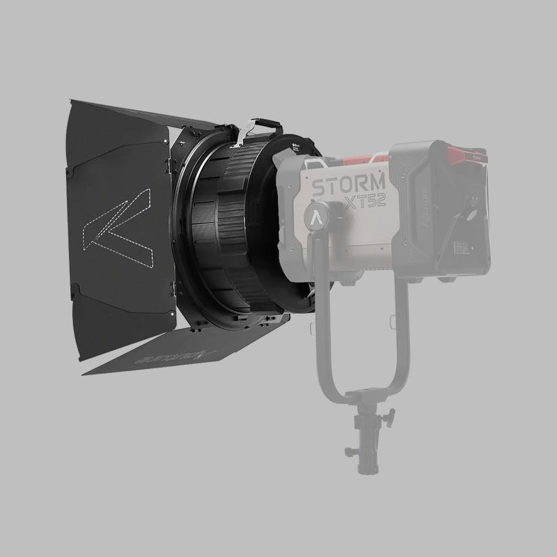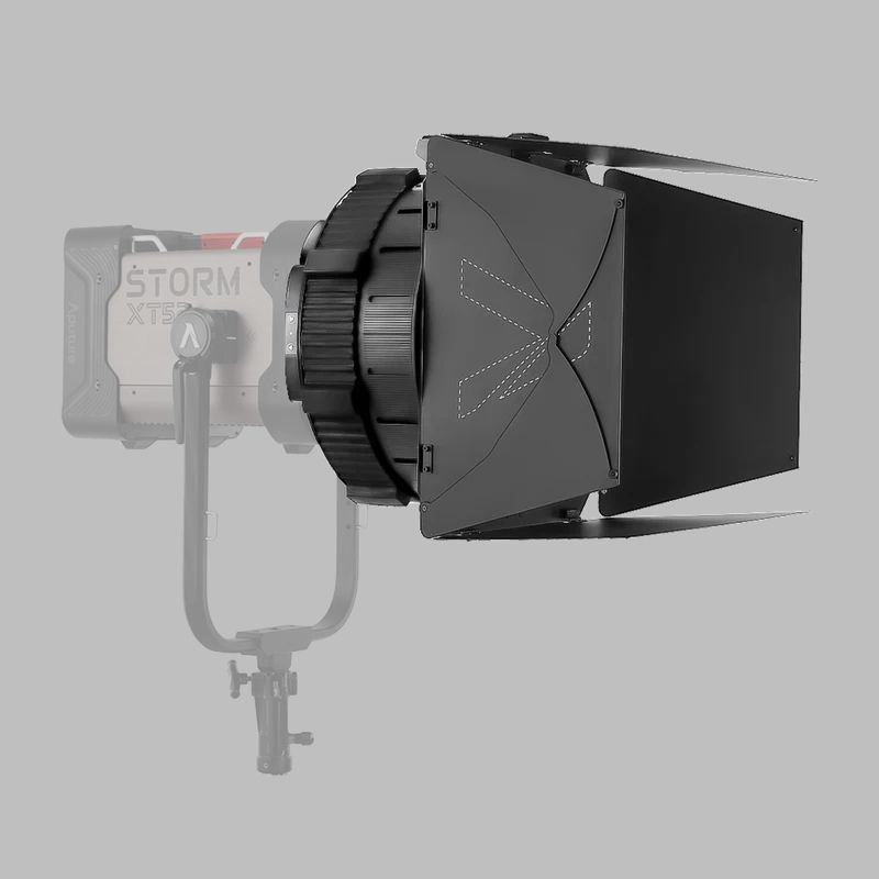 Designed with Aputure’s proprietary mount, the CF16 integrates seamlessly with the STORM XT52 LED fixture. Included CF16 barndoors allow refined beam shaping and spill control, while the safety cable provides added rigging security. The compact form factor and included rolling soft case make transportation and storage efficient for studios, rental houses, and location shoots.