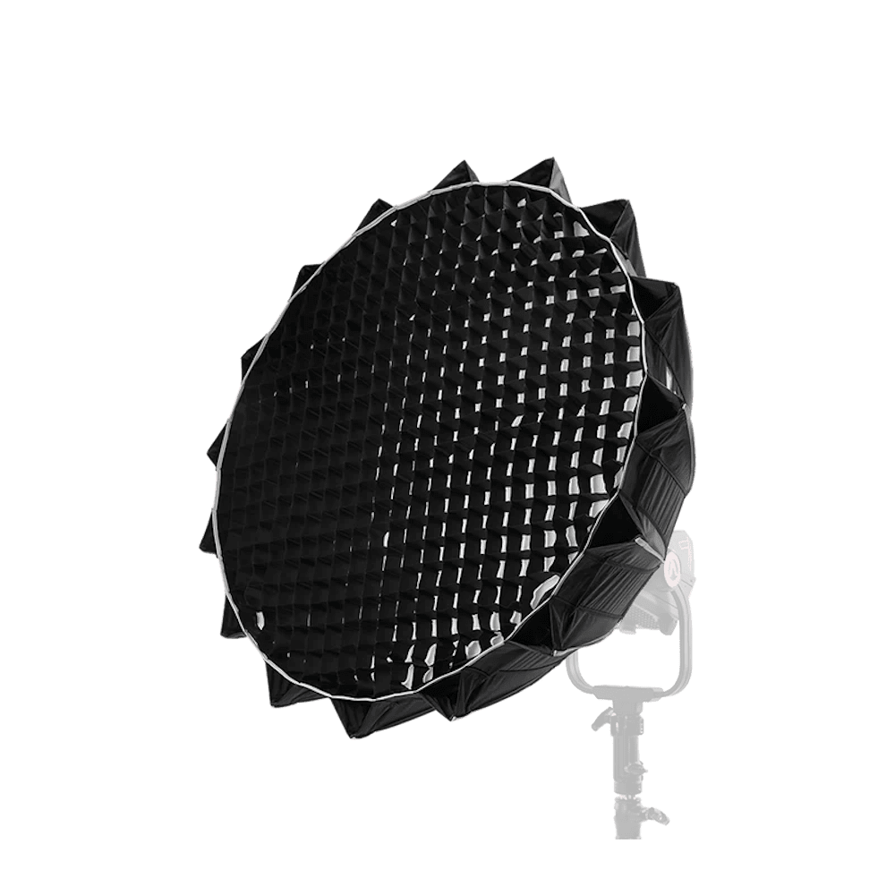 The deep parabolic design and highly reflective silver interior help produce a soft yet punchy lighting quality ideal for interviews, product cinematography, and portrait workflows. Two removable front diffusers (1-stop & 2-stop) and an internal baffle provide additional light shaping flexibility.