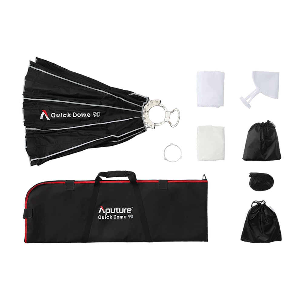 The Aputure Quick Dome 90 is an essential softbox for users needing fast setup, clean output, and Bowens mount compatibility. Order yours today from Barndoor Lighting Outfitters..
