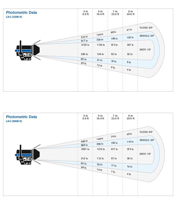 - Colored Light (L5-C only): Full RGB+W Color Gamut with Hue and Saturation Control