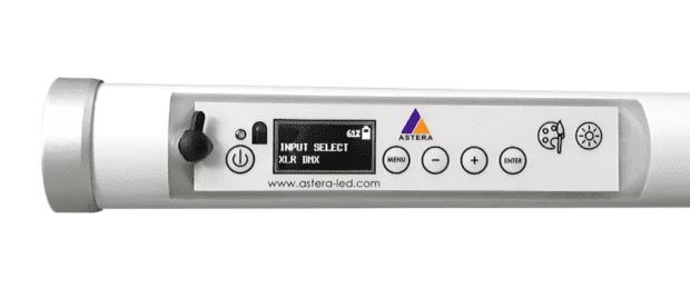 The Astera LED Helios Tube FP-2 has all the features of the popular Titan Tube, but at half the size and output. Measuring just 22.7 inches long and weighing only 1.68 lbs, it's perfect for tight spaces and small locations. The IP65 rated Helios is constructed of rugged polycarbonate shell and metal end caps. Onboard control with digital display makes the Helios easy to use. The built in LG LiOn Battery will power the Helios Tube for up to 20 hours and recharges in just 3 hours. Built in wireless receiver can be utilized with optional Astera ART 7 wireless control box. The LED emitters provide 96+ CRI and TLCI for accurate colors. Need AC power and wired DMX? The optional Aster PowerBox provide a single connection for DMX control and AC power.