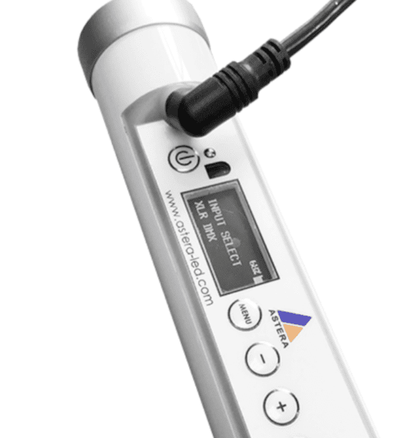 Onboard control with a digital display makes the Helios easy to use. The built-in LG LiOn Battery powers the Helios Tube for up to 20 hours and recharges in just 3 hours. The built-in wireless receiver can be utilized with the optional Astera ART 7 wireless control box.