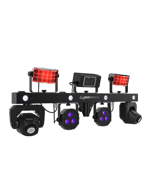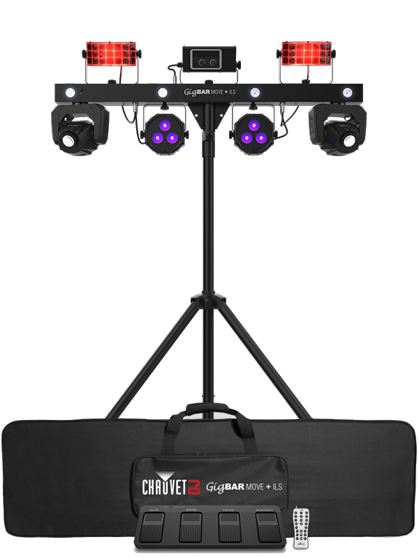The future of easy lighting synchronization is here with GigBAR Move + ILS. This powerful member of the GigBAR family controls the Integrated Lighting System (ILS), the dynamic lighting technology that provides an advanced, coordinated light show across multiple fixture types. GigBAR Move + ILS can control any ILS-enabled fixture, wired or wirelessly. GigBAR Move + ILS is a 5-in-1 lighting system that includes moving heads, derbies, washes, a laser and strobe effect pre-mounted on a single bar. Easy navigation and access to all the powerful 32-watt moving head functions can be accessed directly from the full-color LCD display and Totem Mode keeps the moving heads focused on the dance floor. Built-in UV LEDs illuminate florescent objects for dazzling blacklight effects. GigBAR Move + ILS gives you individual control of each effect to ensure your show looks the way you need it to, but gone is the need to aim a remote directly at the unit! The included RF remote triggers built-in shows without needing line of sight operation. Other easy control options include stand-alone mode, DMX, or wireless footswitch. The GigBAR Move + ILS package includes a tripod, wireless footswitch, RF remote and FREE carry bags to ensure quick setup.