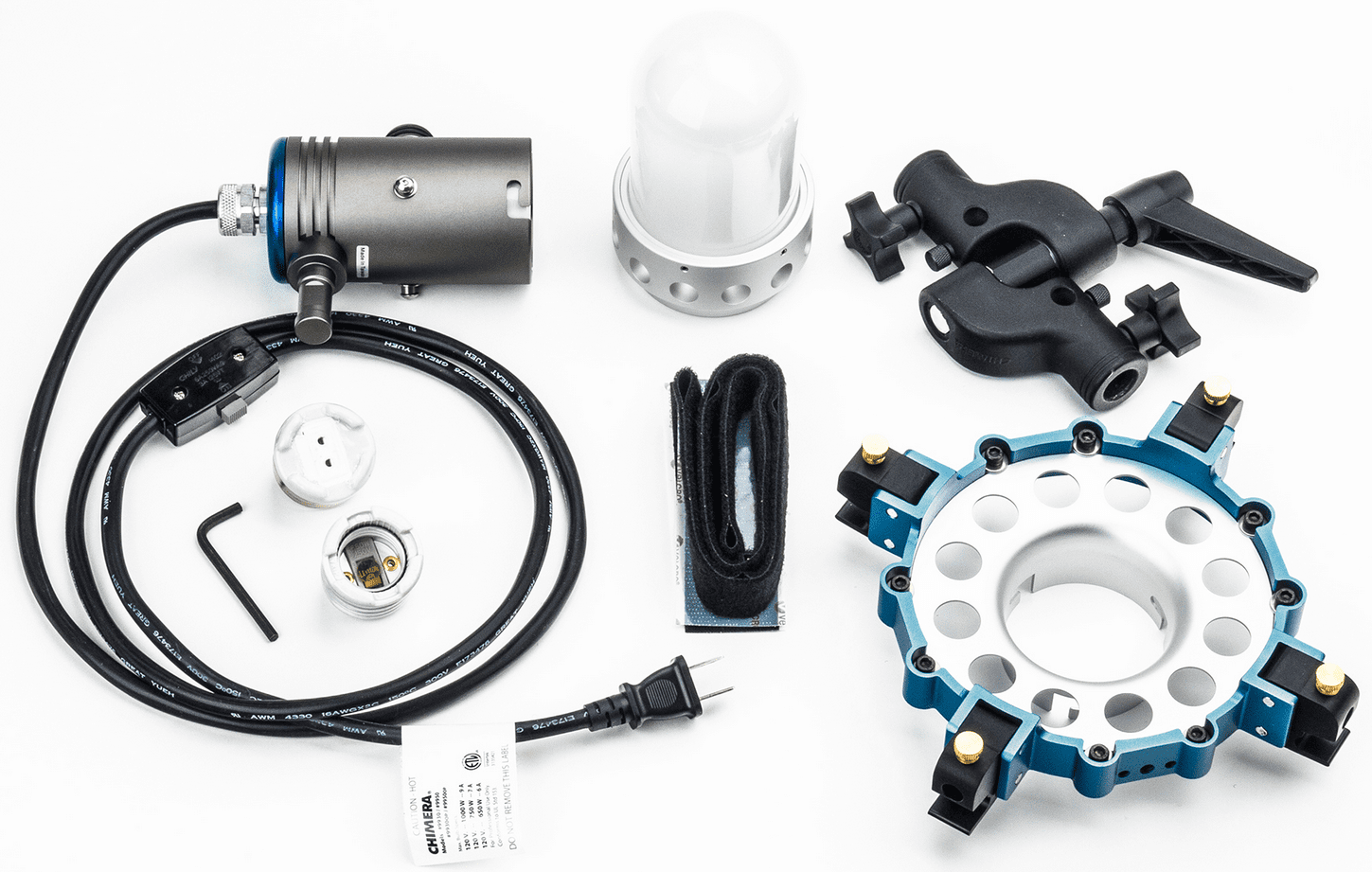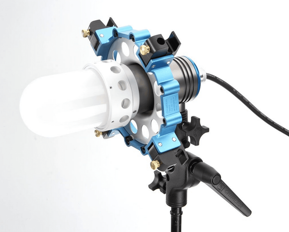 The Chimera Triolet emits a broad, omni-directional light that is compatible with Lightbanks, Lanterns, Octabanks, or even without a modifier for a bare-bulb light effect.
