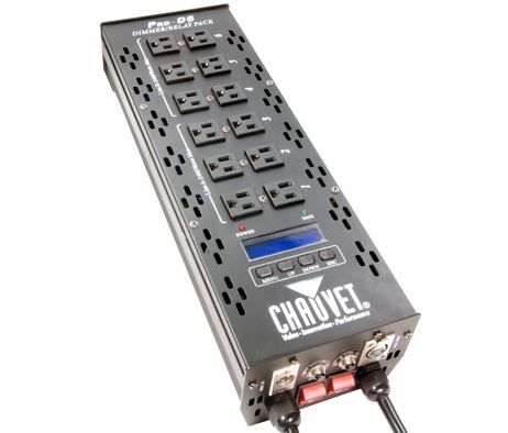 A great, inexpensive DMX Dimmer Pack. A Total of 4600W @ 115V can be dimmed when using 20A male plugs on power cords.
