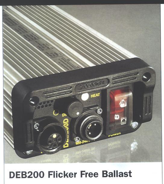 Utilizing the latest technology, the DEB200 electronic flicker free ballast was designed to power the Dedolight 200D and Dedolight 200S. Light weight, yet rugged, small yet powerful with every conceivable feature you would want.