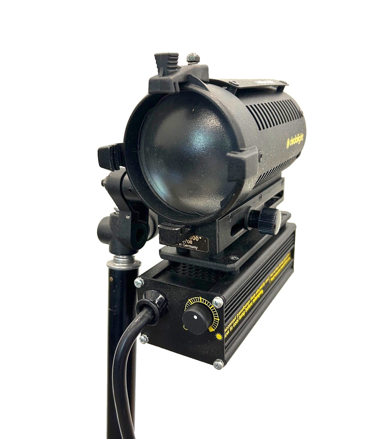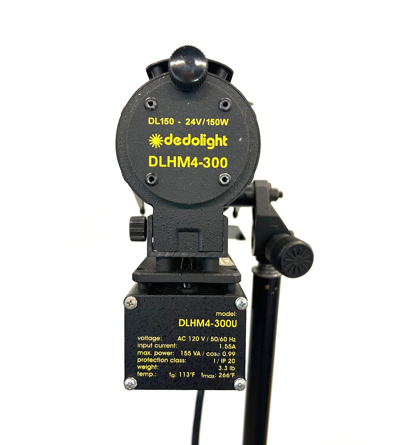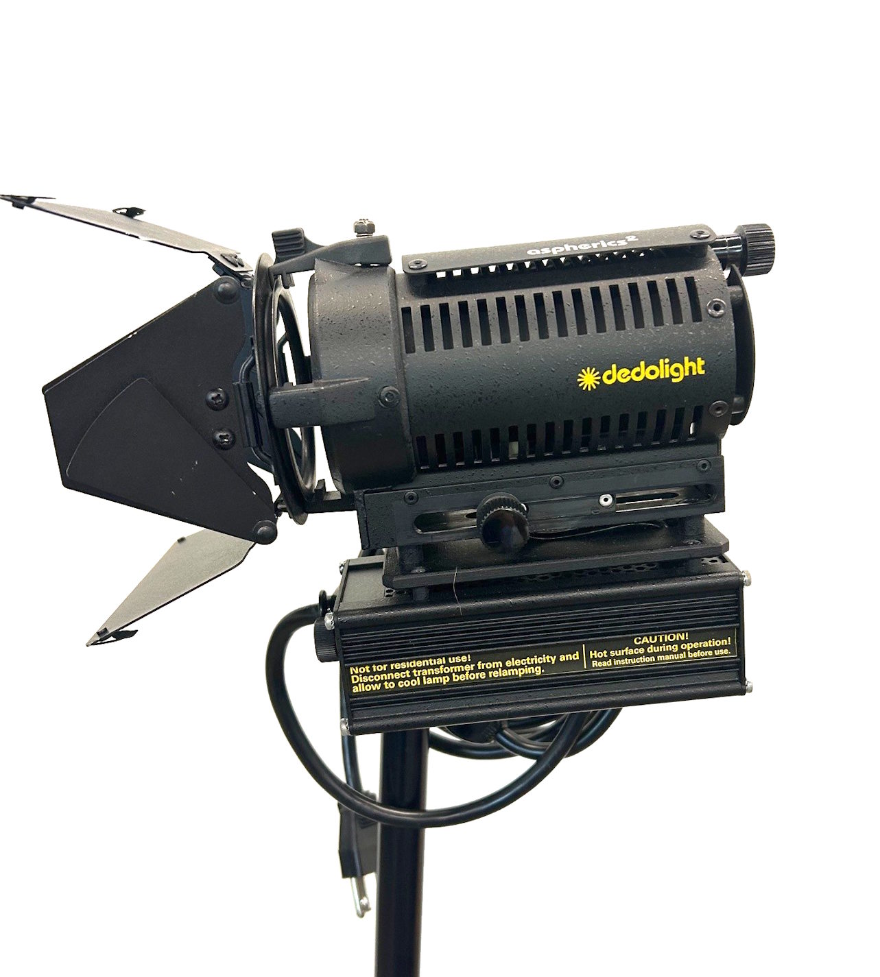 integrated 150W electronic transformer. This Dedolight plugs directly into the wall at 120V. The onboard power supply steps the voltage down to 24V. Uses the 150W 24V Bulb. The onboard dimmer makes this light extremely versatile and easy to use.