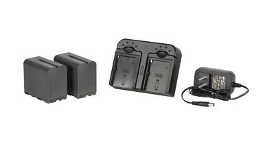 The DV Camera Battery Kit w/ 2x Sony NP-F970 6600mah Replacement Lithium Batteries and Dual Battery Charger features TWO of our IBS-970 L-series NP-F970 compatible battery and our dual DV battery charger. Power your monitors, LED lights or other power hungry devices. Always have a spare batttery handy.