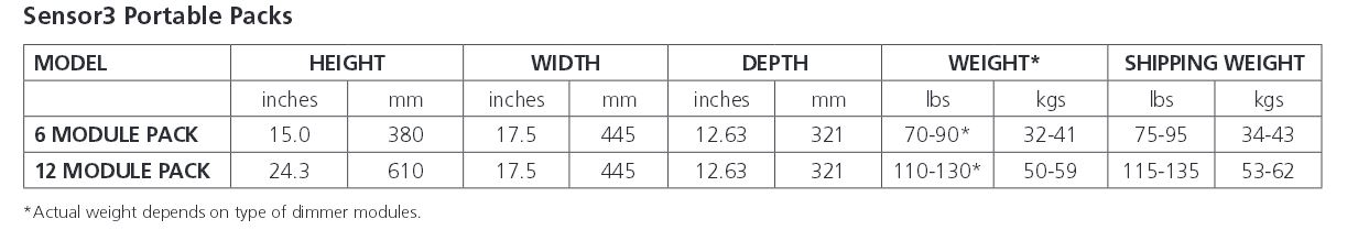Sensor3 Portable Packs deliver built-in dimming features that many installation racks would envy: modular design and magnetic circuit breakers. Add to that optional Advanced Features communication and remote monitoring options.
