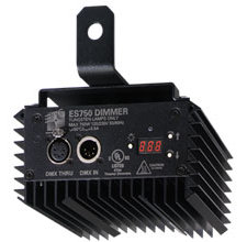 "Going green" doesn't have to mean abandoning the quality of light. Attaching an ES750 dimmer to your fixtures brings your rig the brightness and quality of light that only tungsten can provide, while working seamlessly alongside your LED luminaires. Run both fixture types at the same time by sending simple switched power to all of your lighting positions. Control ES750 dimmers, LEDs and moving lights with your existing data network. The ES750 features onboard controls for local operation and RDM for remote setup. It also offers the ability to set DMX addresses, change curves and receive status information. With the ES750 dimmer, your venue is more flexible, with an infrastructure that can adapt to new requirements and layouts.