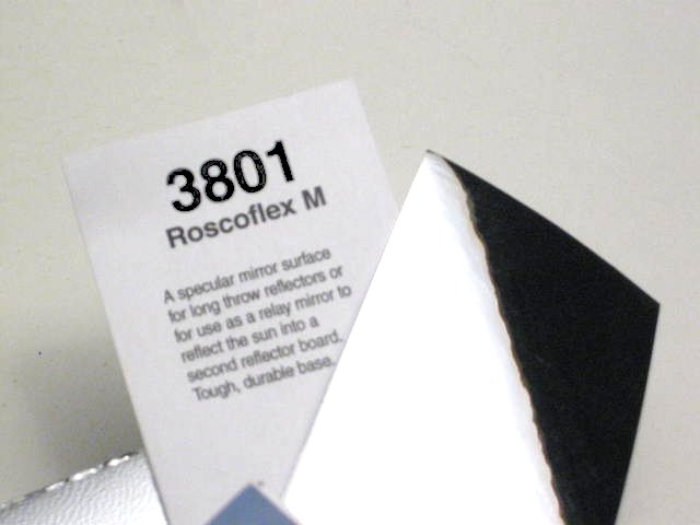3801 Roscoflex M is a very shiny reflective flexible mirror paper. Very efficient at bouncing sunlight or any light source.