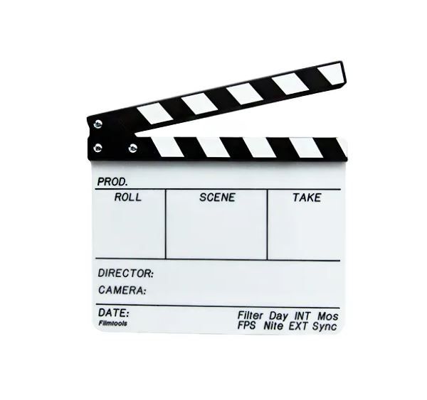 Our best selling lucite camera slate clapboard is constructed from high-quality Lucite and has black & white wooded sticks. Also known as a camera slate.
