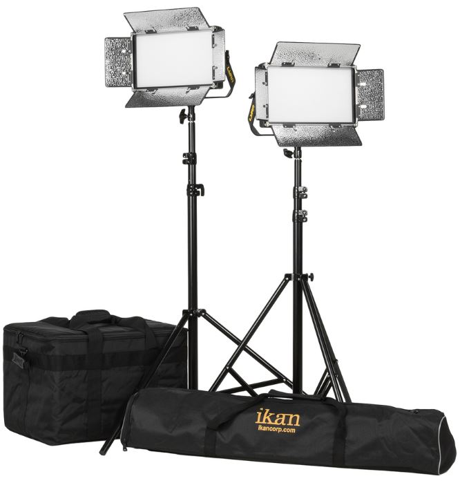 The Ikan Lyra Soft Panel Half x 1 BiColor LED 2 Light Kit provides high CRI LED lighting in a Soft Light kit. iKan Lyra Soft Panels are great for shooting interviews as the diffused led panel makes it much easier on your subjects eyes. It keeps your talent from squinting or frowning during an interview. Soft panels provide a single source shadow vs multi led panel lights. Also helps when working with reflective products as just one even light source will be seen in reflection, versus hundreds of tiny LED emmitters. Fully adjustable color temperature from tungsten 3200K to daylight 5600K, as well as onboard dimmer control. One large, easy to use, yellow knob, on back of fixture controls your functions. This kit also can run on batteries and ships with both mounting plates for Sony V Mount and Anton Bauer batteries (batteries not included).