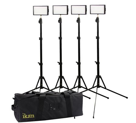 Designed around smaller lighting solutions, ikan's interview kits are portable, durable and easy to setup. ikan's Standard Interview Kit includes: (4) ultra-lightweight portable light stands, (3) iLED 312-v2 LED lights and (1) additional iLED 312-v2 LED light for background or accent light. ikan’s Standard Interview Light Kit also includes a durable utility light bag, (4) light diffusers, (4) power cords, (8) Sony L series style DV batteries and (4) dual battery chargers. Each iLED 312-v2 LED light features a bright (3ft/722 lux) wide angle beam pattern, daylight to tungsten adjustability (3200 K-5600 K), intensity dimmer, on-board battery life indicator and dual battery life capabilities.