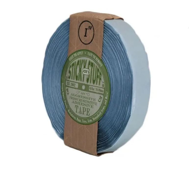 The Joe's Sticky Stuff 1" Clear Double-Sided Adhesive Tape is made of an aggressive, pressure-sensitive adhesive. Each roll measures at 1" wide by 65' long. In the past, people have used foam tape, blue tack and an automotive window ribbon called butyl. Invented and perfected behind-the-scenes in Hollywood, it was originally used to secure props in place without leaving behind any sticky residue and without damaging the item or the surface to which it was affixed. Filmtools stocks a variety of many different adhesive tapes.