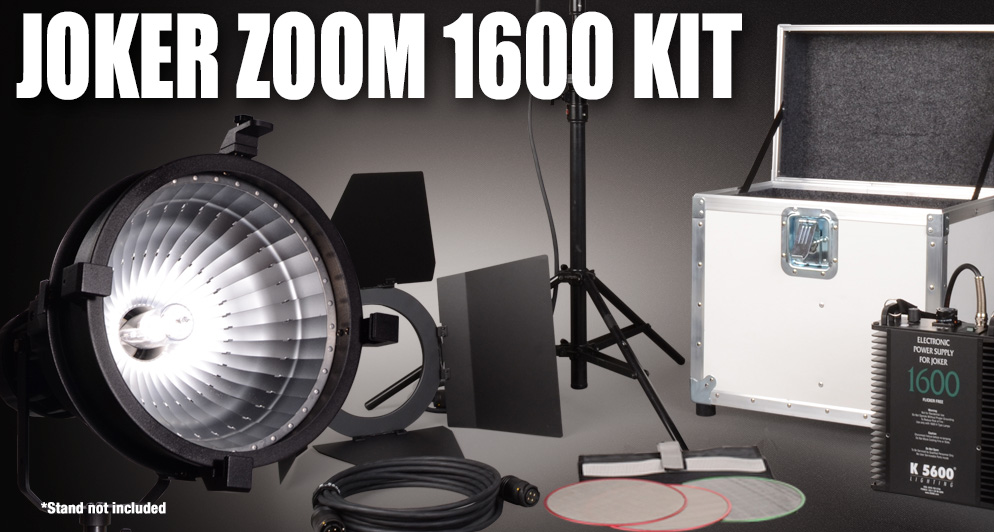 It's an HMI par light without lenses! No more hot lenses to handle or break. The Joker 1600 Zoom focuses from 15 degrees to 65 degrees with a smooth, even light pattern. Now you can work faster and travel lighter with the variable focus beamer specifically designed to produce optimum performance from the 1600w daylight lamp. This is the brightest HMI that comes in a complete, compact, light kit that weighs just 60 lbs. Even better, the electronic flicker-free ballast will run on a 15 amp 120 volt circuit. The ballast is fan cooled and dimmable to 50%, with a selectable frequency switch for 50 / 60 Hz.