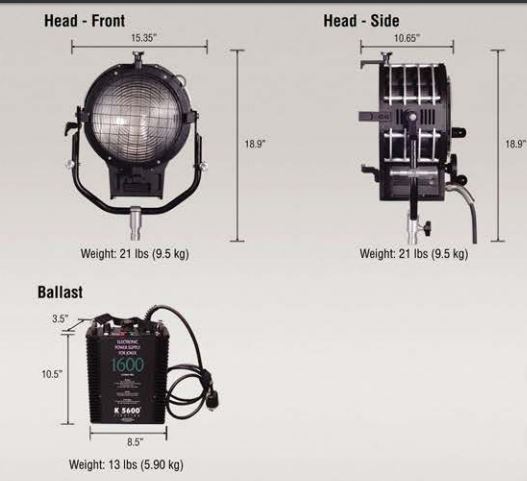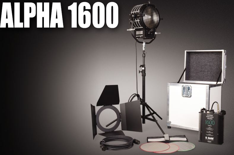 The K5600 Alpha 1600 HMI Fresnel is a versatile daylight source for film, video and photo lighting. Use the Alpha "open eye" without a lens for hard, crisp, clean shadows from a powerful fixture that weighs just 21 lbs and plugs into a standard 120 volt 20 amp household circuit. It's low power requirement makes the Alpha simple to use on location or in studio. Drop in the included Fresnel Lens for traditional smooth, even field and lighting control. The K5600 Alpha is built around a composite quartz reflector that can handle extreme heat allowing for the lamp to be placed right next to the reflector. This new reflector is 15% more efficient than standard aluminum reflectors used by the competition. Now you have a compact 1600w HMI Fresnel that has the output of a 6K Tungsten Fresnel and more output than a 1200w HMI Fresnel, yet smaller in size and lower in weight. Now you can have a "big gun" punchy source in an easy to carry light case that weighs less than 60 lbs! Even more impressive, the Alpha 1600 can be used as a top light, pointed straight down. Now get shafts or pools of light in 5600K for dramatic lighting effects. Need a large soft source? Add an optional Chimera softbox or shoot thru a large diffusion frame. Includes a super efficient, flicker free, auto voltage sensing (90 -265V & 50/60Hz), electronic ballast that is fan cooled and allows dimming down to 50%. The Alpha mounts with a combo junior pin / baby pin 1 1/8" or 5/8" diameter. Yoke also feature (2) baby pins for optional rigging points including mounting 4x4 frames.