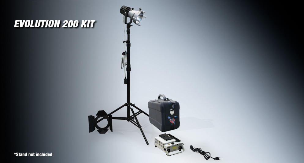 The focusing openface matt reflector allows you to adjust the beam of light from spot to flood with a quick turn of the Beamer. No lenses needed! The most compact of our News beamers, yet still permits the light to be versatile like our others having the ability to convert from the openface directional light to a Bug-lite (Evolution Beamer detached) that is the ideal to evenly fill a Lightbank or Lantern. Perfect for interviews, product shots, training videos, Schools, and much more... The Evolution 200 is available with the standard AC Electronic Ballast or with our NEW 200w AC/DC ballasts. All are 110v/220v 50/60 hz. Also will work with our 200 & 400 slimverters