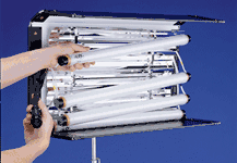 Kino Flo 2ft 4BanksKino Flo 2ft 4Banks the most versatile softlights on the market. Color temperature doesn’t shift when the light levels change. Lamps are long lived and operate outside the fixture. The fixtures are lightweight enough to