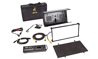 The Kino Flo FreeStyle 21 LED DMX Kit w/ Soft Case unleashes your creative side with a quick-release feature to remove the LED panel from the fixture, cutting the weight nearly in half (from 11.6 lbs/5.3kg to 7 lbs/3.2kg) and creating a smaller form factor for better rigging flexibility. The LED panel’s corner bumpers can be used to hang from rope or wire. The panel also takes a Twist-On mount for working on light stands. The Freestyle 21 comes complete with the full color, programmable FreeStyle controller, Head Cable (25ft), Complete Fixture with removable LED panel, and a twist-on KinoGrip Center Mount. Honeycomb 90° or 60° louvers, mounted with Velcro, give direction to the light, and when removed the panel displays a broad soft beam across the set.