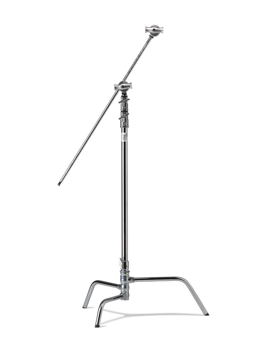 The Kupo Grip Master C-Stand Kit 40in. with Turtle Base is the easiest grip stand to setup and breakdown. A new spring ring control allows the legs to be folded in just seconds with ease. You don't have to wrestle with the legs to get them to open and close. In addition, the Kupo C-Stand has a "turtle" base which is a removable base. Removable bases are easier to transport, making the stand lighter and more compact. The turtle base also has an 1 1/8" female receiver, allowing for the stand to be used as a floor mounted low light stand. Simply remove the center column with a twist of a knob. The Master C-Stand Kit ships with a 2.5 inch grip head (gobo head) and 40 inch grip arm. The head and arm allow for great flexibility in getting your net, flag, bounce card or light, in just the right position. The Kupo 40" grip arm is made of 5/8" diameter steel rod and terminates with a 5/8" hexagonal stud for mounting lighting fixtures. The Kupo 2.5" grip head has 4 "V" shaped holes that will accept 5/8", 1/2", 3/8" and 1/4" diameter rods.