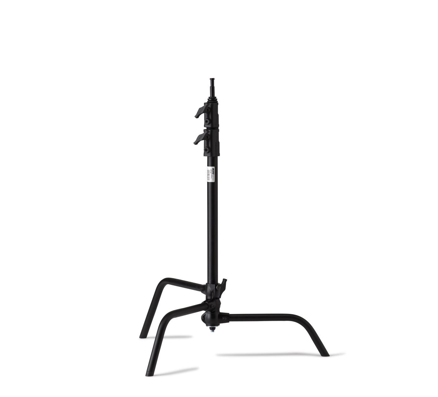 Grip Stands, or simply known as C-Stands, have been the most common type of grip equipment used by the filmmaking industry for decades due to their strength and flexibility. Used on their own, or in combination with a grip head and grip arm, the C-Stand is used for mounting lighting equipment and a whole variety of light shaping tools and accessories. The Kupo Master C-Stand with Sliding Leg features two legs that are spring loaded to open in fixed positions while the third leg is height adjustable by loosening a locking knob and sliding it up and down the main riser section. This enables the user to raise one leg higher than the others to level out the stand on an incline or uneven terrain. This feature provides optimum support of lights, reflectors, and gobos. All C-Stands feature a unique base specially designed with three varied leg heights. This enables the user to stack or nest the stand bases so that the risers are just inches apart from one another for use in close proximity mounting of lights and other grip equipment along with easy storage. The 20in Master C-Stand has a black powder coated finish and a zinc alloy casting on its base that's five times stronger than aluminum to sustain the weight of heavy sandbags and other equipment. The aluminum cast locking collars are outfitted with a stainless steel heli-coil that protects the risers from damage.
