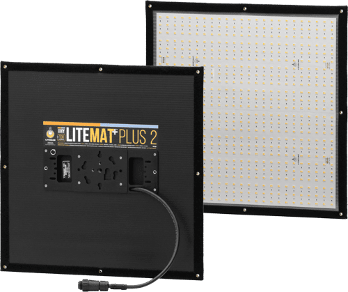 The LiteGear LiteMat Plus 2 Hybrid LED Light Kit Gold Mount provides a soft, controllable LED BiColor light source. Featuring 1152 new Cinemitter LEDs. At less than 1 inch thick and weighing 3.8 lbs, the LiteGear LiteMat Plus 2 is a versatile lighting tool. Use it as a keylight for interviews, a soft top-light fill or a wrapping back light. The perimeter is covered with Velcro for easy attachment of accessories or even attaching to a wall or ceiling. A convenient Kino Flo type twist on mounting plate for use on a baby stand, c-stand or clamp. You will be impressed with the Cinemitter LEDs which are 40% brighter than our VHO Pro emitters. Plus a high CRI of 95+ while providing a color temperature range from 2600K to 6200K.