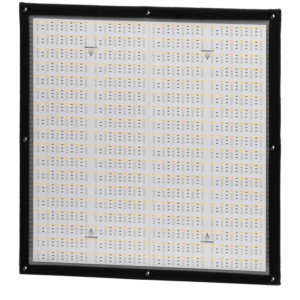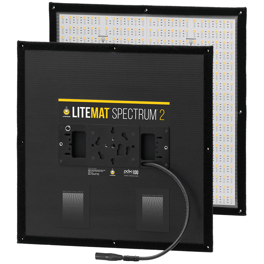 LiteMat Spectrum 2L is a Full Color LED panel that is lightweight (3.9 lbs) and is just 1" thick. The Spectrum 2L is also a larger light source providing a natural soft light. LiteGear added red, green, blue, and amber to augment the Cinema chips and extend the system’s CCT abilities from 2000K to 11000K. The key here is the amber chip. It is simply not possible to achieve the best white-balanced color without it. LiteMat Spectrum is the most camera compliant LED light fixture available. It can accurately reproduce any shade of white that the camera considers correct. That can be anywhere between 2,000K and 11,000K with +/- 8 points of tint correction. LiteMat Spectrum can also augment its white light with color accents. Saturated color can be delicately added with 100 shades of depth. LiteMat Spectrum can also improve post-production workflows. It is the first lighting system to be certified color space compliant. That means taking the guesswork out of color mixing for digital cinema. Its unique and patent-pending color processing engine also provides wide color gamut desaturation. LiteMat Spectrum features pixels that are 240mm x 480mm in size allowing you to create compelling lighting effects while remaining simple to operate with just 5 DMX addresses per Spectrum Pixel. LiteMat Spectrum remains compatible with all head-mounted accessories such as PolySkirts, Diffusers, and SnapGrids.