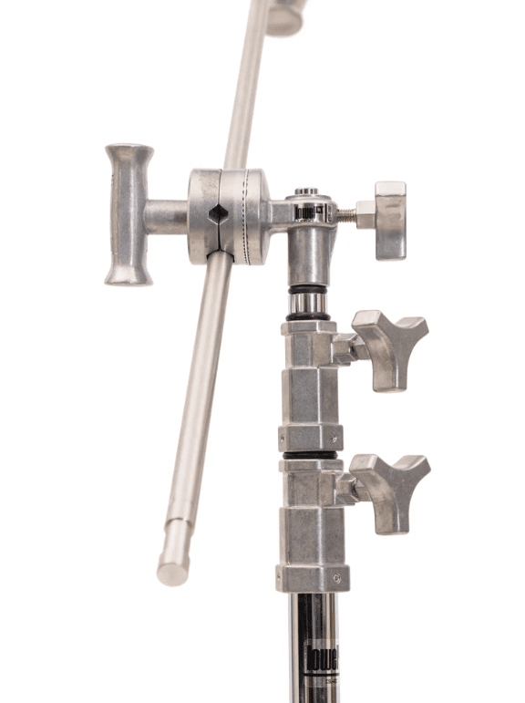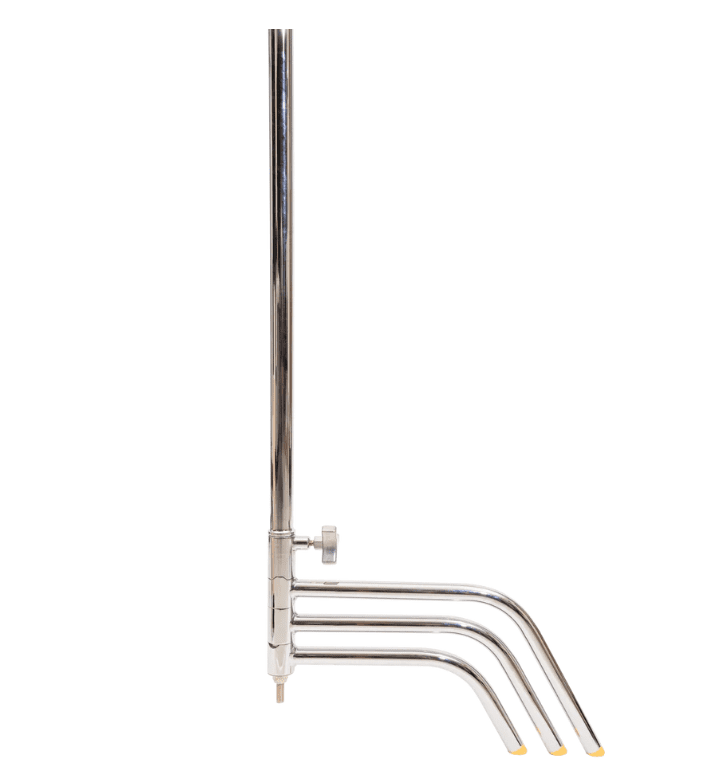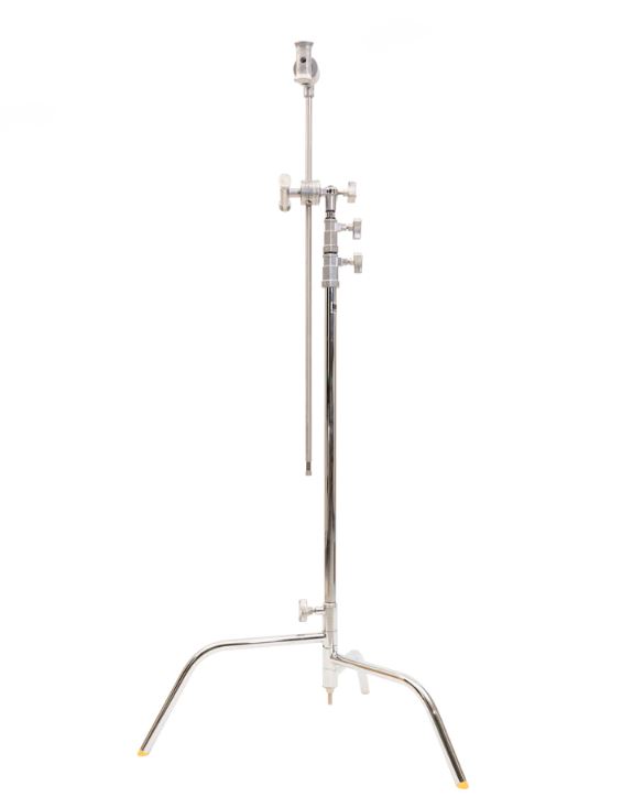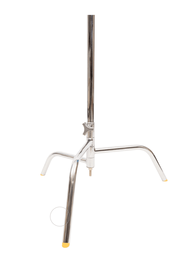 The turtle-base model C-stand (CTB-40) features spring-loaded legs for fast setup and breakdown and for easy travel and storage. The removable base with a 1⅛-inch junior receiver facilitates exchanging riser sections with accessories like a stand adapter for low-angle lighting, or replacing the legs with a runway base for greater mobility.