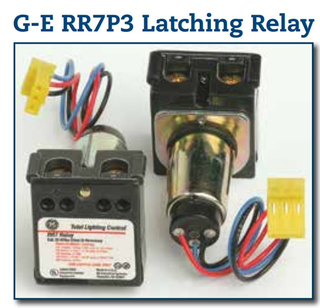 - Time proven, reliable, G-E RR7P3 latching relays snap in and have low voltage plug-in connectors