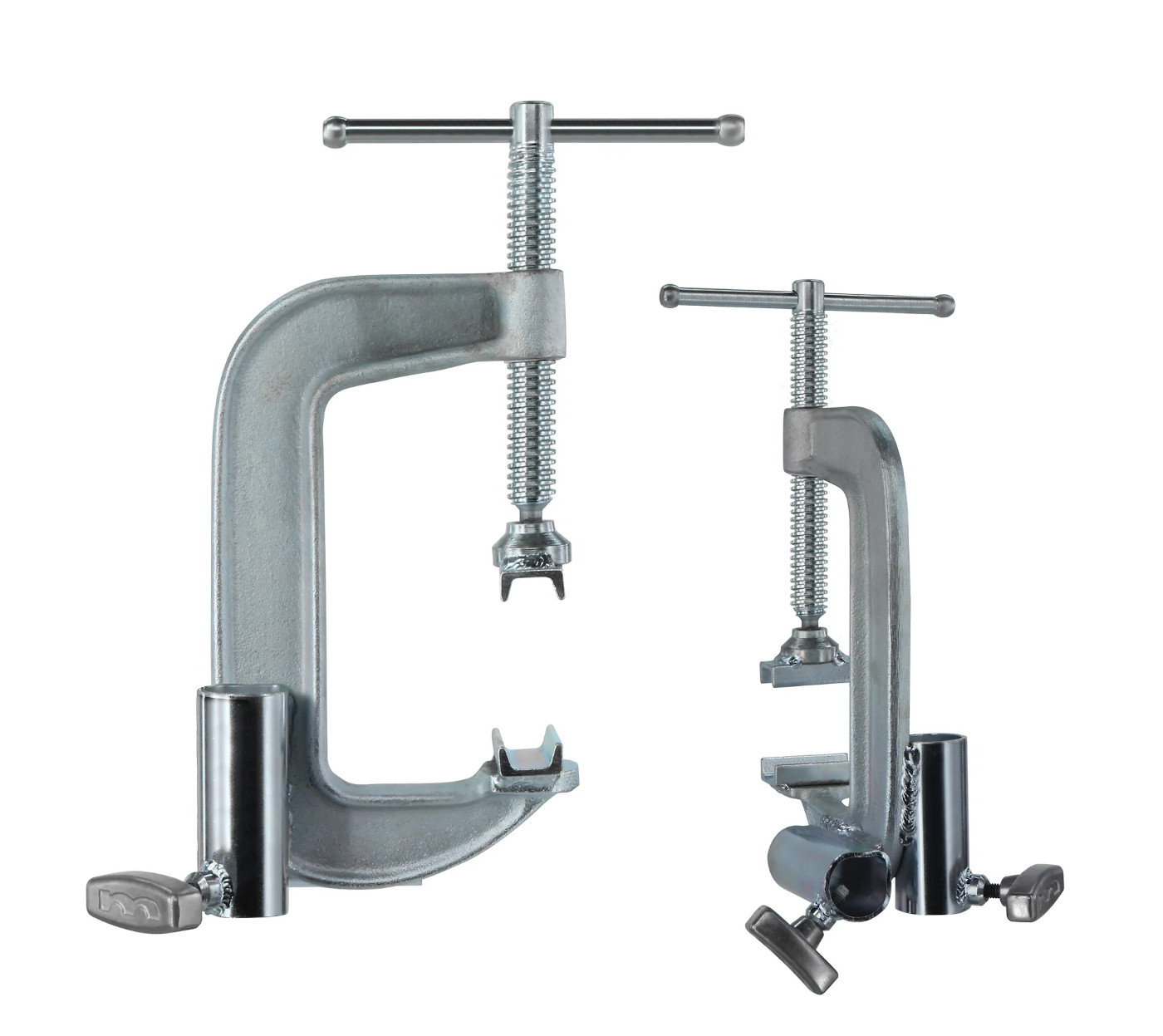 Matthews C Clamps are available in 4", 6", 8", 10" and 12" with or without 5/8" mounting pins or Junior Receivers. Each clamp has a steel channel welded to both sides of the opening for better and safer locking.