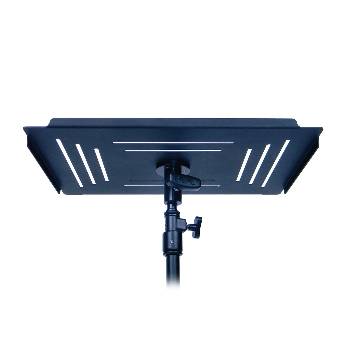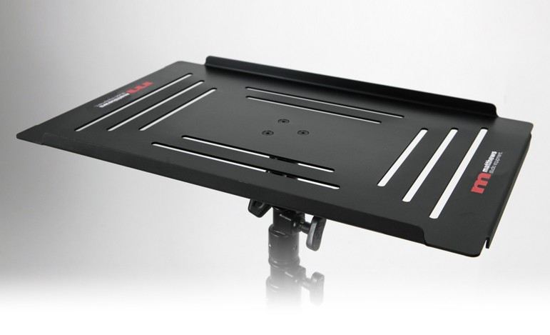 The Matthews media tray (861832) allows photographers, videographers, editors and DIT's to easily support media devices using industry standard tools. The new media tray will hold laptops including the popular MacBook Pro and MacBook Air series, or any other device within the dimensions of 10.5" x 16.5" (26.5cm x 42cm). The tray is supplied with an industry standard 3/8" female thread on the bottom and a removable 5/8" (baby) adapter for mounting to light stands or a wide selection of industry hardware.