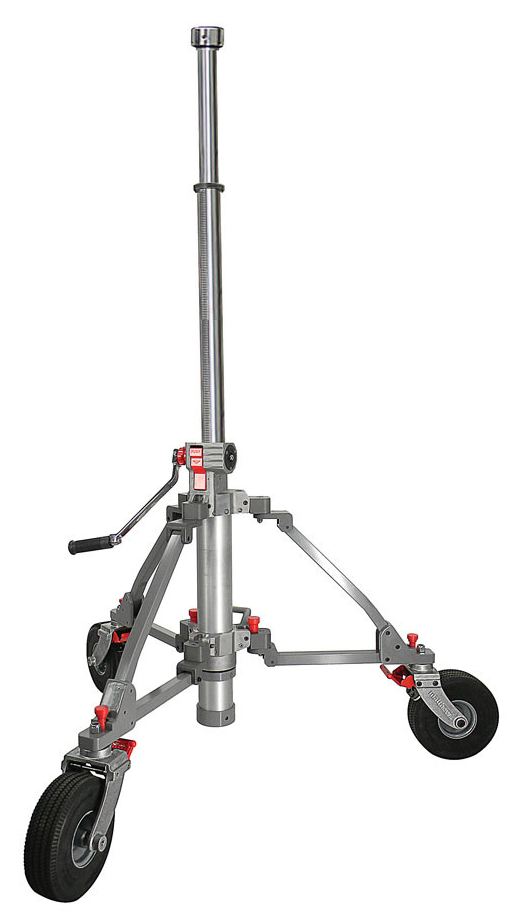 The Matthews Super Vator III Crank Stand is one of the best known, safe and dependable crank up light stands. Rack and pinion drive train has only 2 moving parts for simple and reliable operation. Features rubber tires for easy movement on rough surfaces. Is it beefy? How about a 200lb maximum load capacity! Minimum load height of 56" makes it easy to get the big lights mounted.