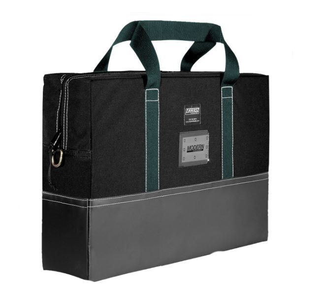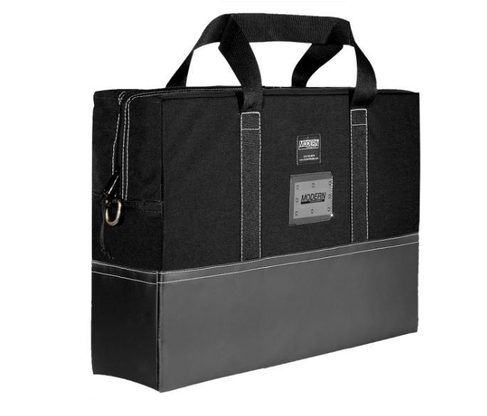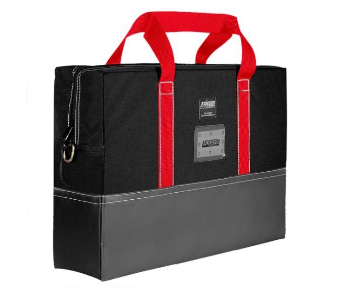 The Modern 18x24 Flag Bag holds (7) 18"x24" Nets, Flags, Scrims or Silks. 18" x 24" Carrying Bag exterior is made of Cordura fabric with heavy duty zippered closure and carrying handles with vinyl on the bottom. The inside is lined with Coroplast to protect the contents and provide stiffness.