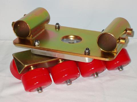 32 Polyurethane wheels provides a smooth and efficient ride on standard straight or curve dolly track.