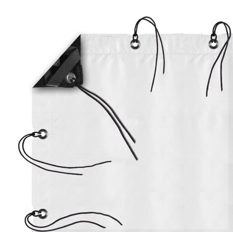 All of our textiles come with webbing, grommets, and ties along all sides. We also sew elastic on all four corners which allows for a quick connection onto one of our frames. Each textile comes with a storage bag, labeled with its contents.