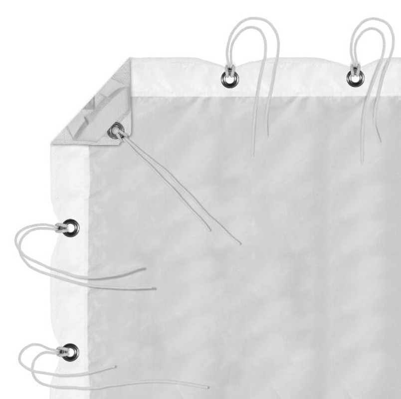 All of our textiles come with webbing, grommets, and ties along all sides. We also sew elastic on all 4 corners. Each comes with a storage bag, labeled with its contents.