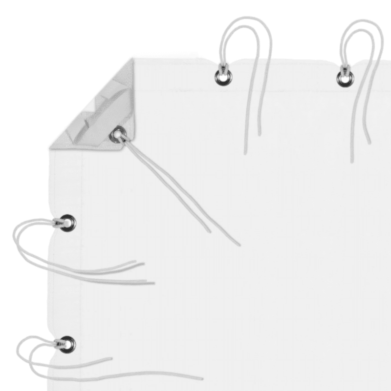 All of our textiles come with webbing, grommets, and ties along all sides. We also sew elastic on all 4 corners. Each comes with a storage bag, labeled with its contents.
