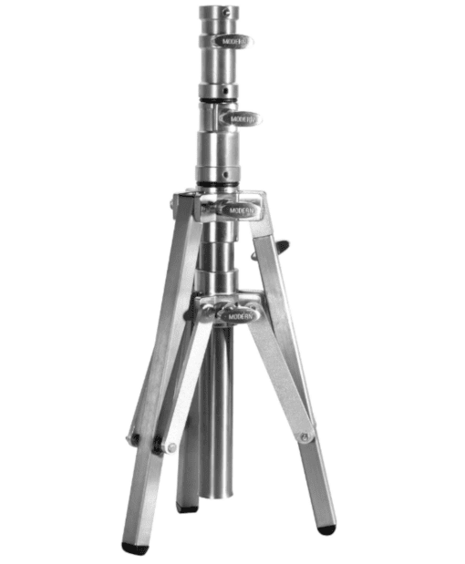 The Modern Studio Speed Rail Slider Stand is 9 inches lower than a low combo stand, perfect for getting a Dana Dolly or Slider at a proper interview height. A wide base keeps your dolly / slider and camera secure. The rocky mountain leg makes leveling the stand very easy on uneven ground. As only Modern does, we manufacture our Speed-Rail Slider Stand with 304 military grade stainless steel legs and tubes. This strong stand with a low working height (max height of 40"), is typically used with pipe rail sliders or pipe dolly systems. This stand features a single riser that terminates into a 1-1/8" junior receiver.